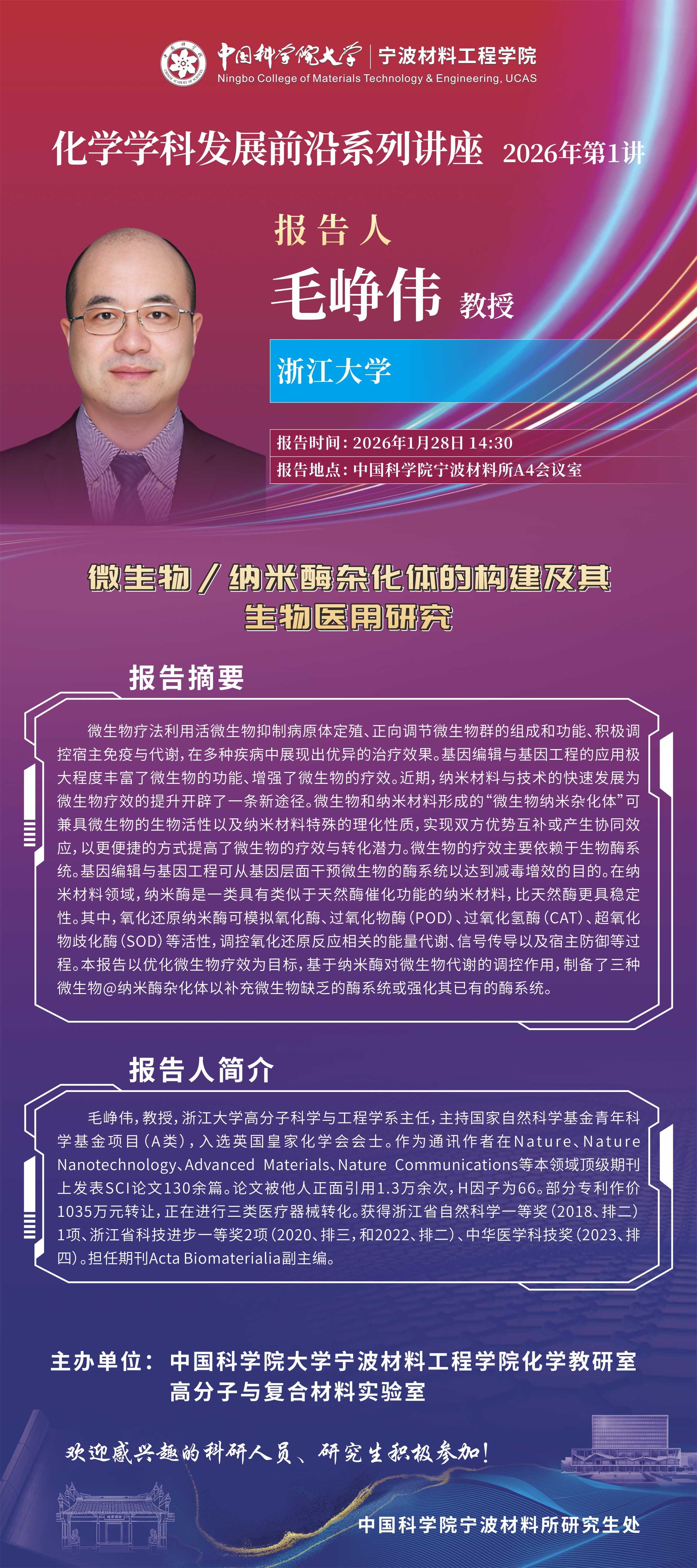 1月28日:毛崢偉 :微生物納米酶雜化體的構(gòu)建及其生物醫(yī)用研究 發(fā)布:2026-01-20 點(diǎn)贊: 字號:小 大 打?。?a href="javascript:pintDocument()">